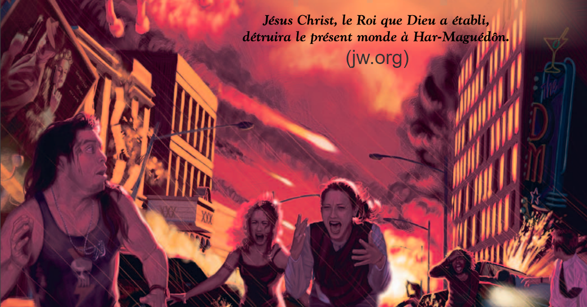 Le salut et Armageddon La Watchtower enseigne que seuls les Témoins de Jéhovah survivront à Harmaguédon, et que des milliards de personnes risquent de mourir